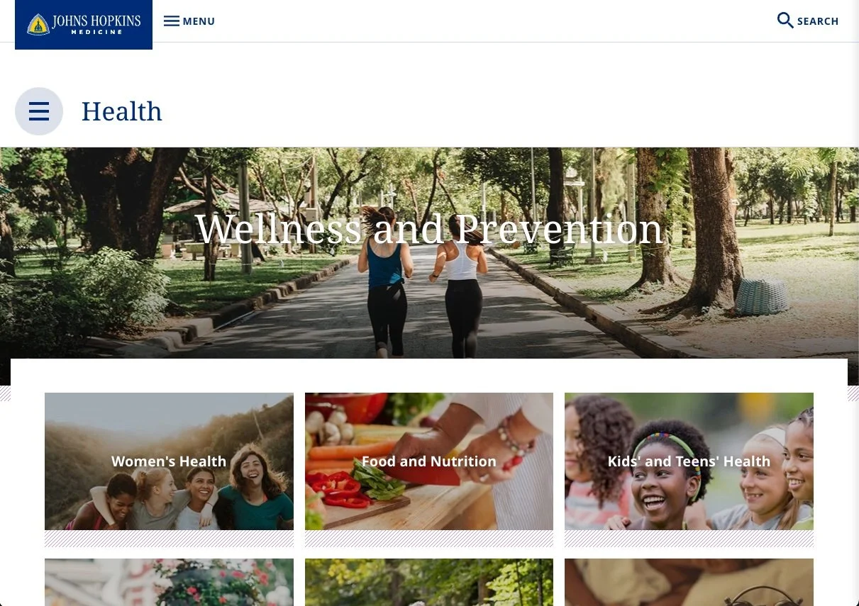 Johns Hopkins Medicine partnered with TBG to transform their digital health content and user experience. Despite creating abundant, engaging content for consumers, the organization faced challenges with accessibility and navigation due to its dispersion across multiple silos.